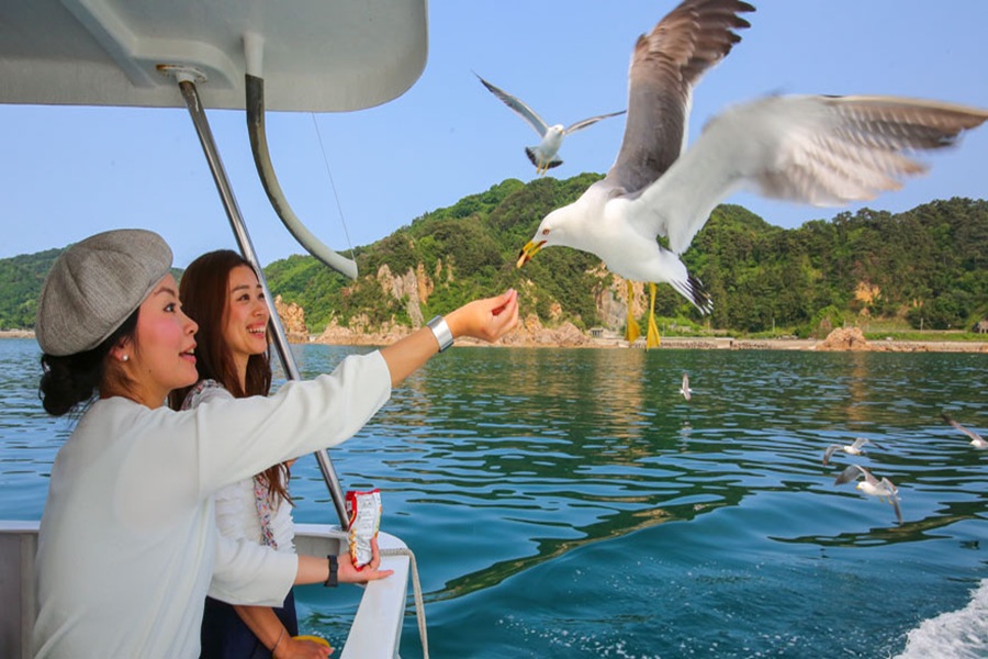 笹川流れ観光汽船は、遊覧船に乗って国の史跡名勝天然記念物「笹川流れ」を航行し、その絶景や海鳥の餌付けをお楽しみいただける観光施設です。乗り場では、新鮮な魚介類を使用したスモークした魚や天日干しした干物のお土産もご購入いただけます。